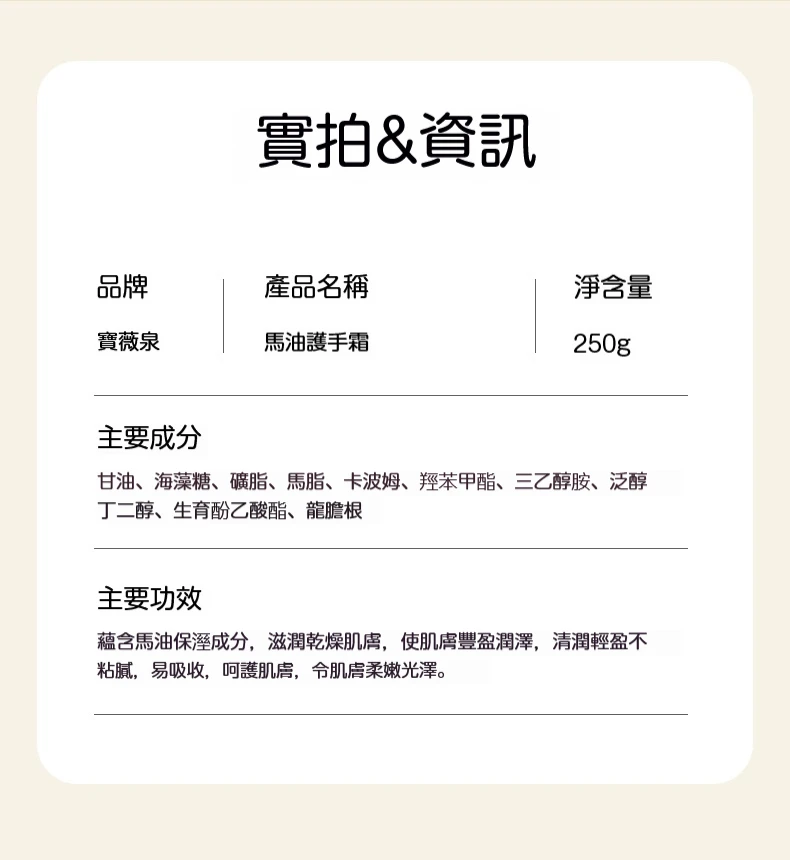 4分鐘前馬油護手霜 ✨馬油與人體皮脂結構相似,高滲透吸收~深唇滋潤不油膩 - 「買一送一」2入組-NT$998「敏感肌也能安心使用」